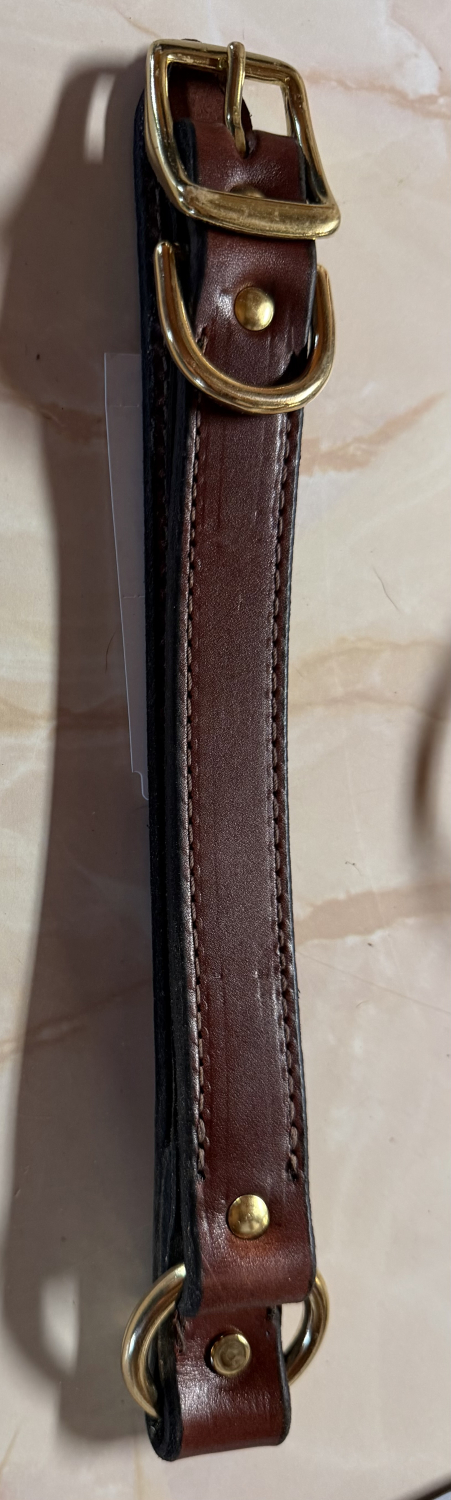 - HEAVY DURABLE LEATHER. REAL BRASS ID TAG CENTER RING FOR LEASHES.