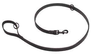 - Perfect length for my needs. Sturdy and well made. The added rings allow different configurations for use in different situations such as hands-free, tethering two dogs together on one line, forming a handle on vest/harness, etc.