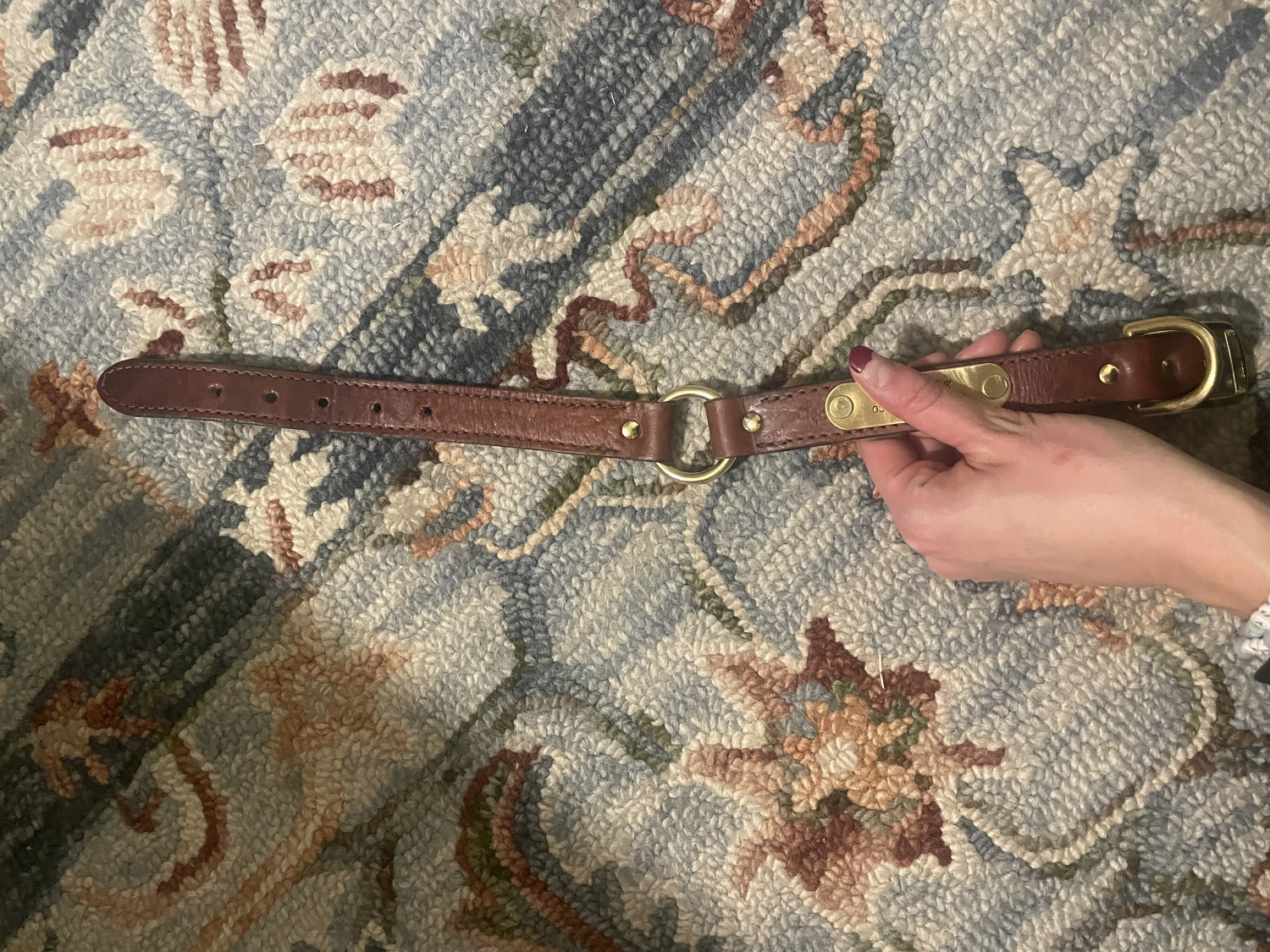 - HEAVY DURABLE LEATHER. REAL BRASS ID TAG CENTER RING FOR LEASHES.
