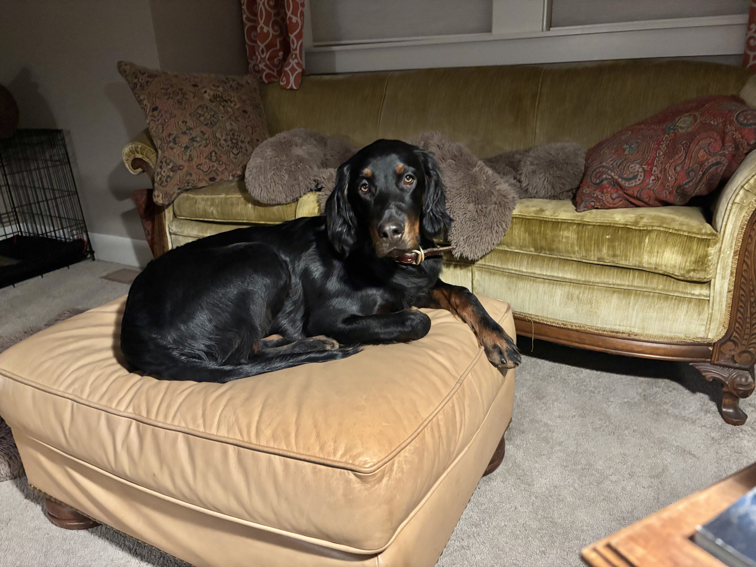 - She will sport her reflective orange collar duri g hunting season.