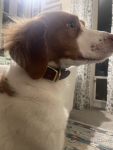 Fine leather and brass buckle looks pretty sharp! Allie is a beautiful Llewellyn Setter and this collar sure looks first class.