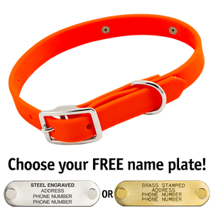 This is my 3rd Collar purchase from Gun Dog Supply. All 3 have been for my Grand Dogs! This one is for my Dainty GSP. (well, she's a petite GSP, BUT, She's HUGE when it comes to GO!!!) The Green Biothane collar matches her Brittany Brothers, just the 3/4" version instead. The collars are well made of quality materials, easy to clean and don't pick up smell (that's a huge benefit). The Laser engraved Brass Tag Looks GREAT!!! Always a Positive Experience with GDS!!!