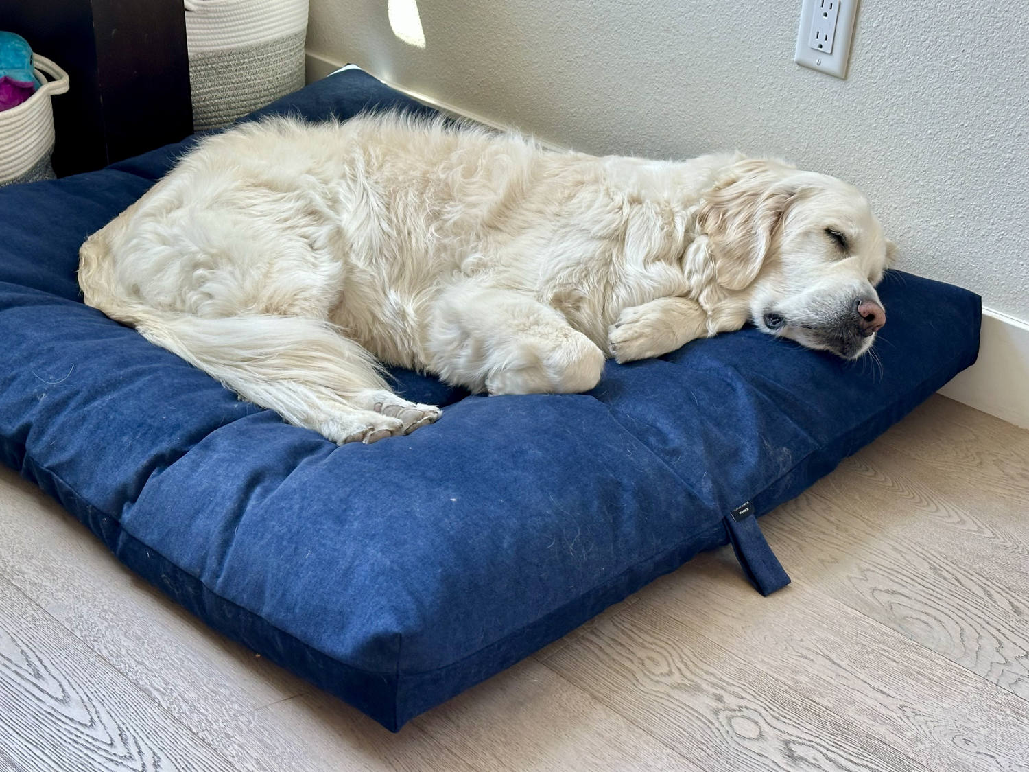Our 15-year-old cattle dog is retired now and has a couple of beds. This Bizzy bed is his new favorite sleep bed. His night vision is poor these days and the Bizzy bed is easy for him to snuggle into and feel secure.