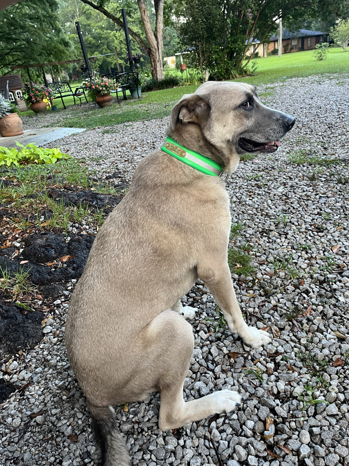 Looks great and is very strong and sturdy! We have 2 GSDS, Gunner’s little sister Katiana likes to clamp onto Gunner’s collar when playing and eventually tears them apart! Snell’s Gun Dog Supply collars are the toughest collar I’ve ever purchased! Great product and price! Best of all MADE IN THE UNITED STATES OF AMERICA!