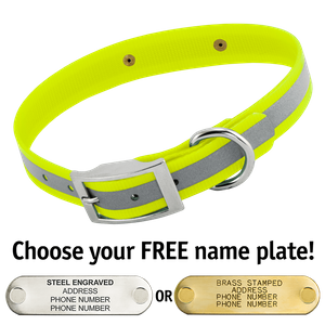 This is the third (or fourth?) collar of this type that I've purchased from Gun Dog Supply. I chose it primarily for the secure ID tag and reflective strip. The high quality vinyl coating washes easily after my dog finds something stinky to roll in. To top it all off, it looks great. My dog gets so many unexpected compliments!